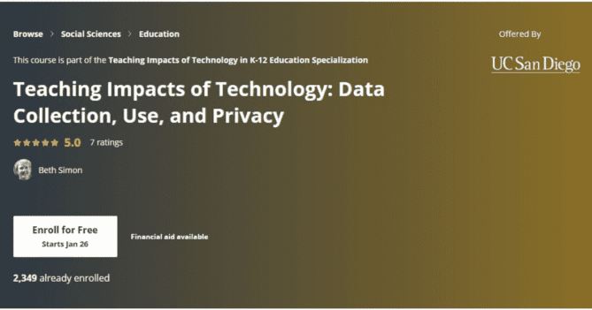 In this course you’ll focus on how constant data collection and big data analysis have impacted us, exploring the interplay between using your data and protecting it, as well as thinking about what it could do for you in the future. This will be done through a series of paired teaching sections, exploring a specific “Impact of Computing” in your typical day and the “Technologies and Computing Concepts” that enable that impact, all at a K12-appropriate level.